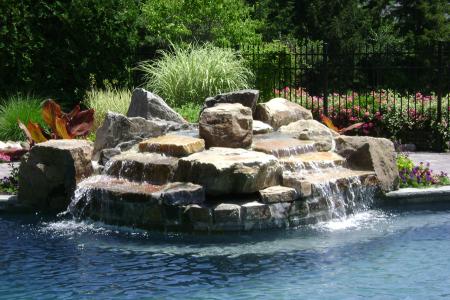 Constructed using a variety of materials including steel reinforced shotcrete or gunite, natural stones and also a variety of live vegetation for color.